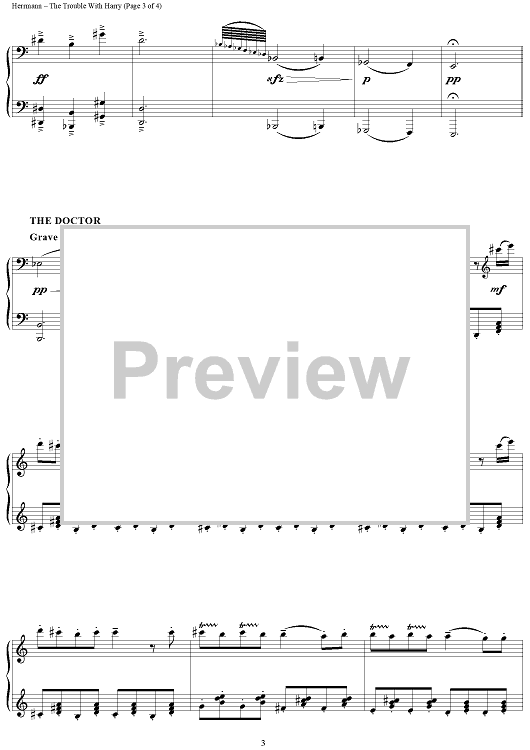 Digital Sheet Music for The Trouble With Harry (Overture/The Doctor) by Bernard Herrmann scored for Piano Solo; id:456364