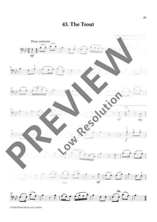 Digital Sheet Music for The Trout by Franz Schubert, Barrie Carson Turner scored for Cello And Piano; id:491180