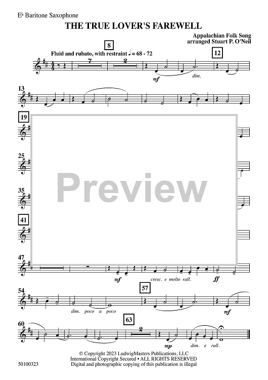 Digital Sheet Music for The True Lover's Farewell - Eb Baritone Saxophone by Stuart O'Neil scored for Concert Band; id:509919