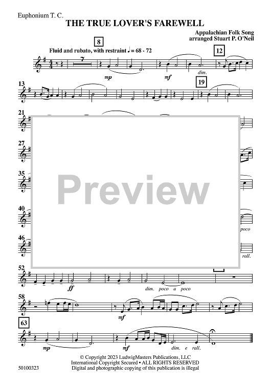 Digital Sheet Music for The True Lover's Farewell - Euphonium TC by Stuart O'Neil scored for Concert Band; id:509928