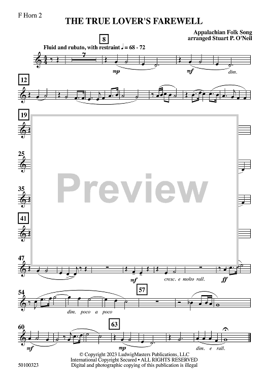 "The True Lover's Farewell - F Horn 2" Sheet Music by Stuart O'Neil