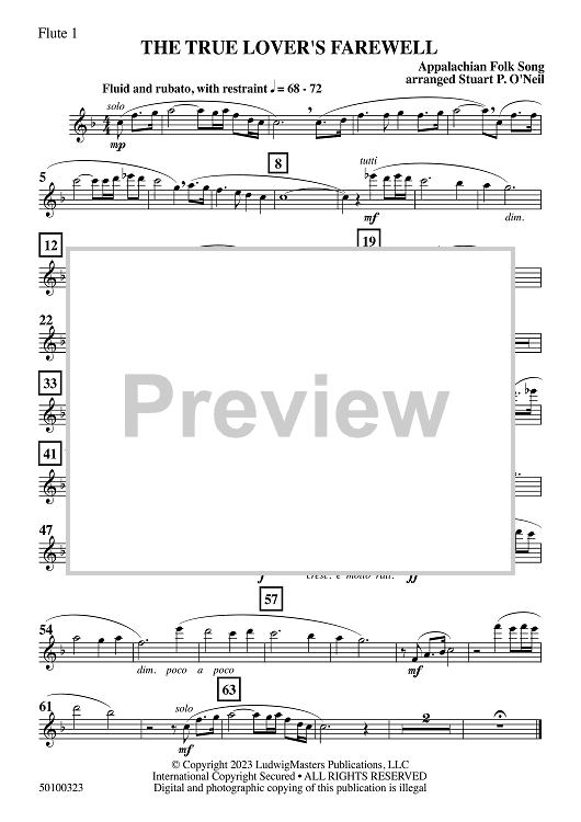 Digital Sheet Music for The True Lover's Farewell - Flute 1 by Stuart O'Neil scored for Concert Band; id:509906