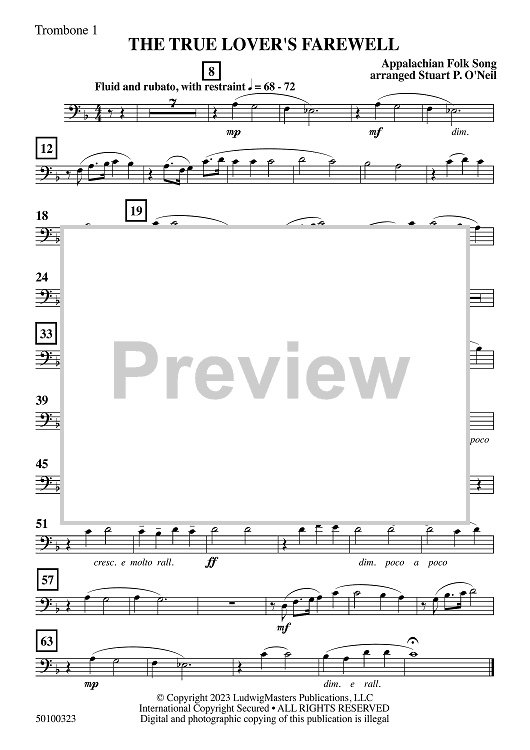 Digital Sheet Music for The True Lover's Farewell - Trombone 1 by Stuart O'Neil scored for Concert Band; id:509925