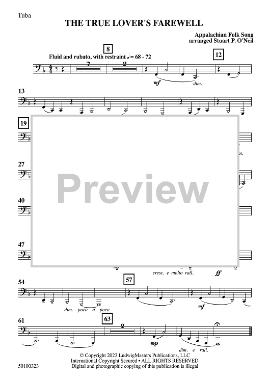 Digital Sheet Music for The True Lover's Farewell - Tuba by Stuart O'Neil scored for Concert Band; id:509930