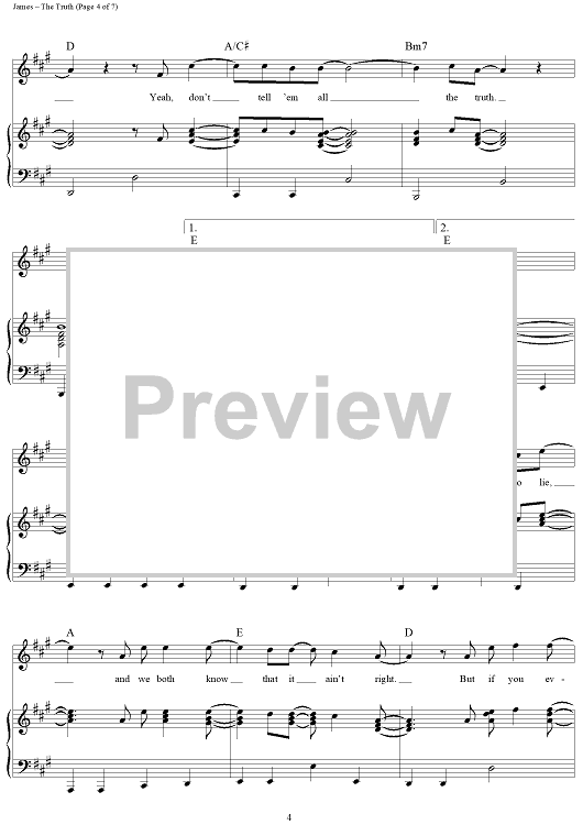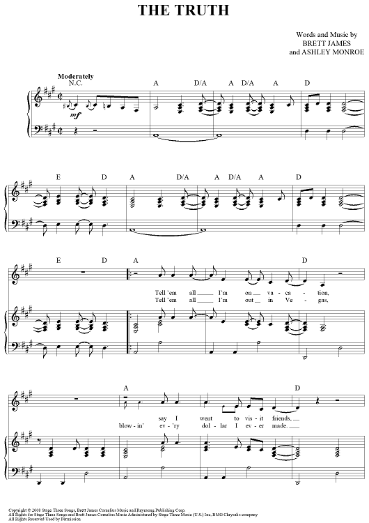 Digital Sheet Music for The Truth by Brett James, Jason Aldean, Ashley Monroe scored for Piano/Vocal/Chords; id:445070
