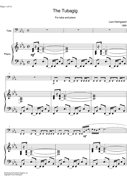 Digital Sheet Music for The Tubagig - Score by , Lars Holmgaard scored for Tuba/Piano; id:327394