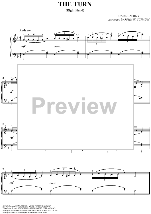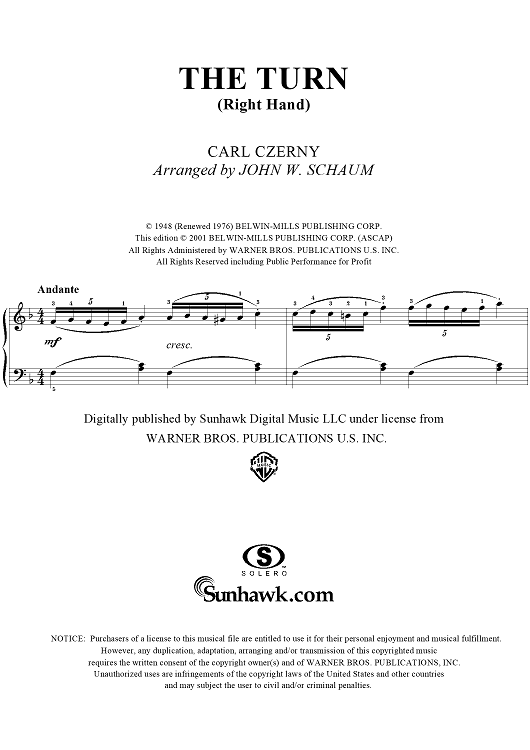 Digital Sheet Music for The Turn (Right Hand) by Carl Czerny, John W. Schaum scored for Piano Solo; id:293095