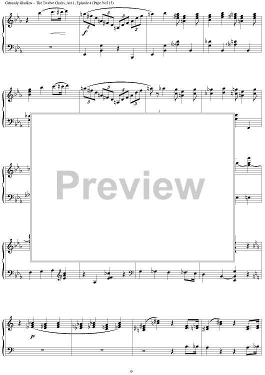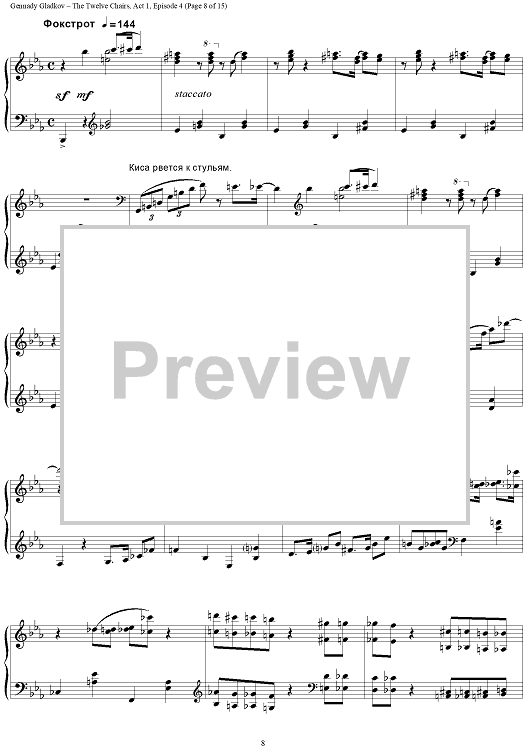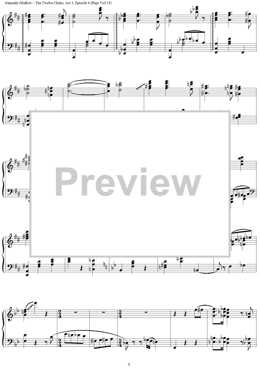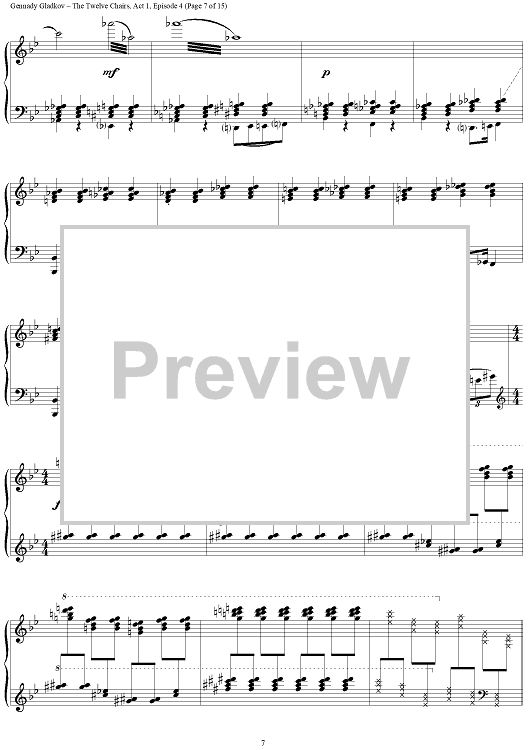 Digital Sheet Music for The Twelve Chairs. Act 1. Episode 4 – Furniture Museum by , Gennady Gladkov scored for Piano Solo; id:403480