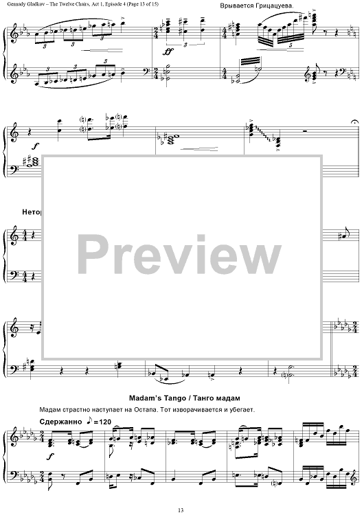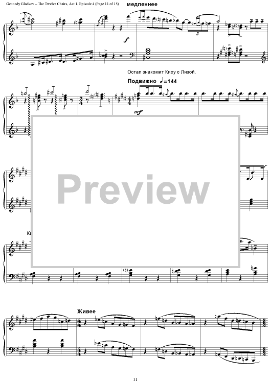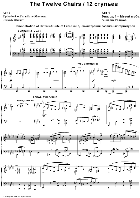 "The Twelve Chairs. Act 1. Episode 4 – Furniture Museum" Sheet Music by Gennady Gladkov