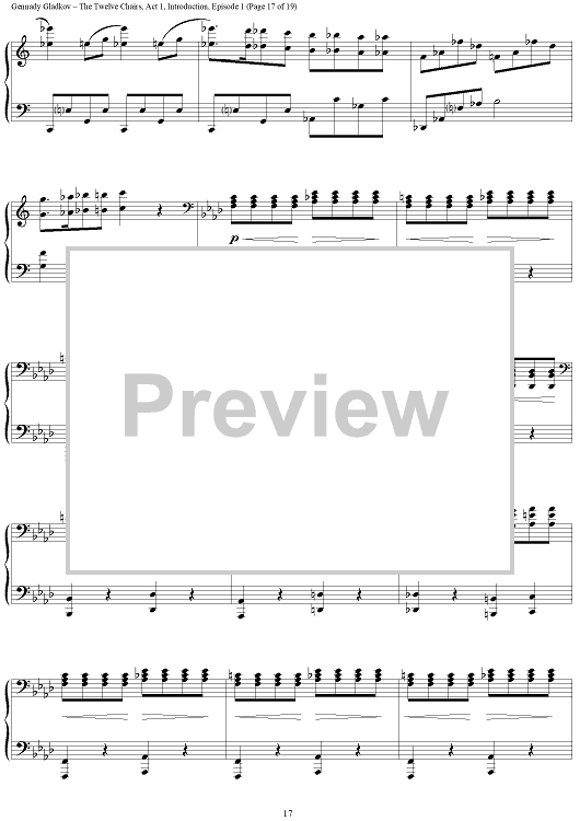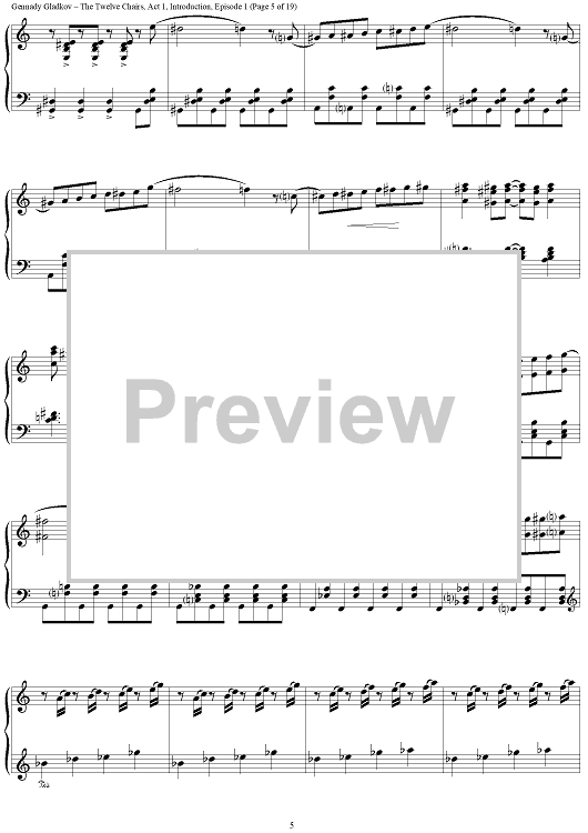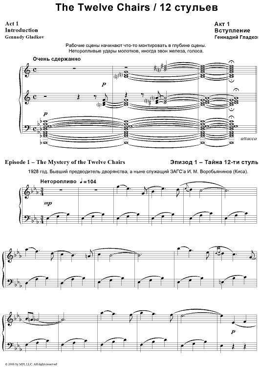 Digital Sheet Music for The Twelve Chairs. Act 1. Introduction. Episode 1 – The Mystery of the Twelve Chairs by , Gennady Gladkov scored for Piano Solo; id:403477