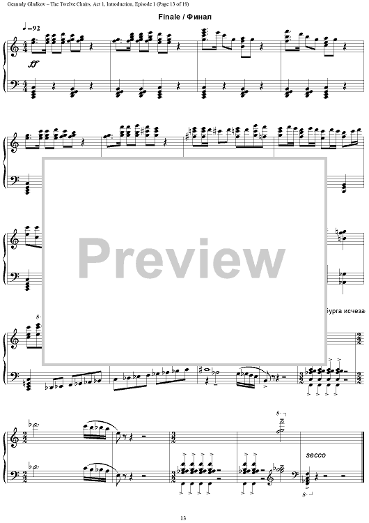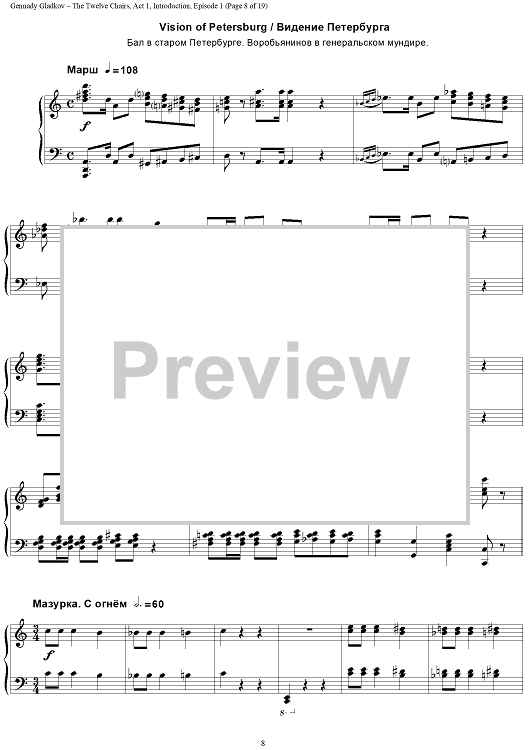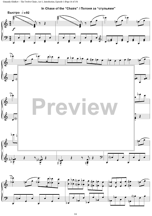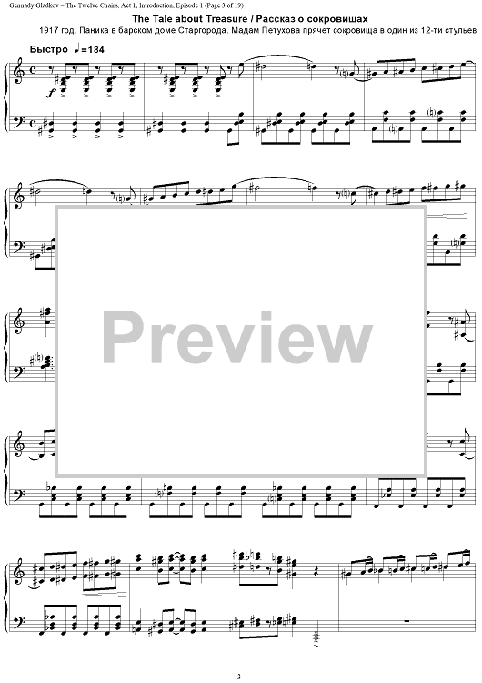 "The Twelve Chairs. Act 1. Introduction. Episode 1 – The Mystery of the Twelve Chairs" Sheet Music by Gennady Gladkov