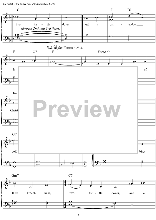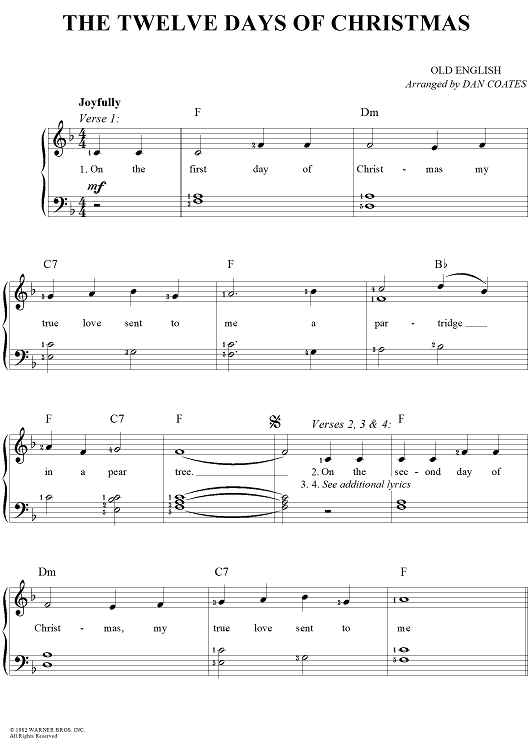 Digital Sheet Music for The Twelve Days Of Christmas by Dan Coates, Old English scored for Easy Piano/Vocal; id:284058