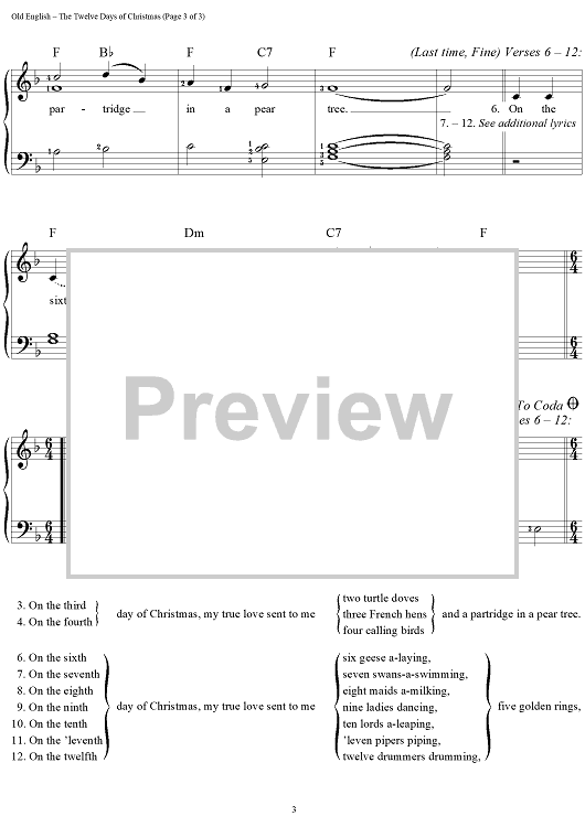 "The Twelve Days Of Christmas" Sheet Music by Old English
