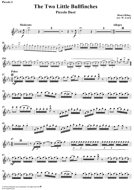 "The Two Little Bullfinches - Piccolo 2" Sheet Music by Henri Kling