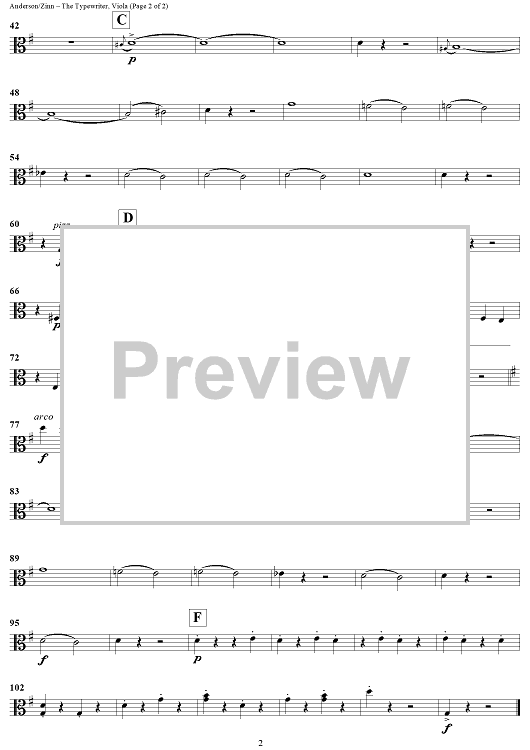 Digital Sheet Music for The Typewriter - Viola by Leroy Anderson, William Zinn scored for String Ensemble; id:434279