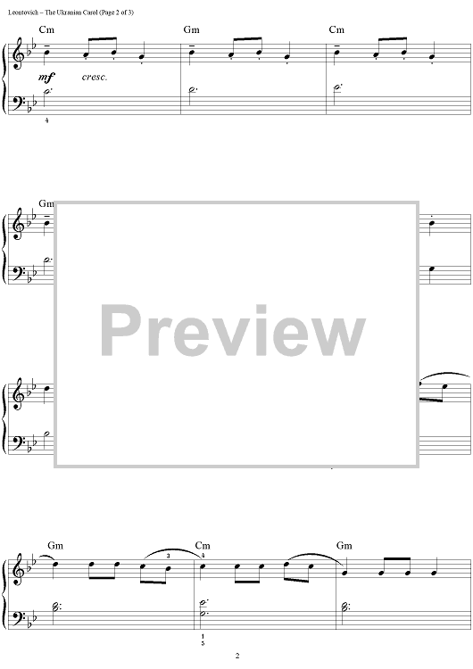 Digital Sheet Music for The Ukranian Carol by M. Leontovich, John Brimhall scored for Easy Piano/Chords; id:450565