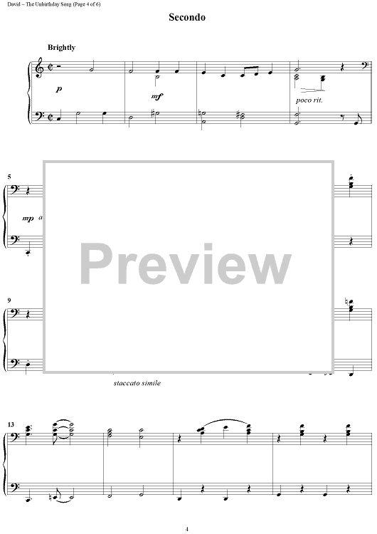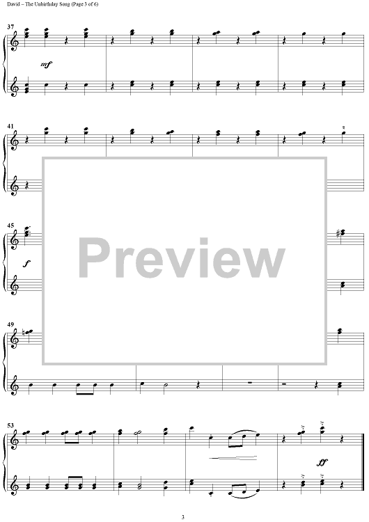 Digital Sheet Music for The Unbirthday Song by Jerry Livingston, Mack David, Al Hoffman scored for 1 Piano, 4 Hands; id:402712