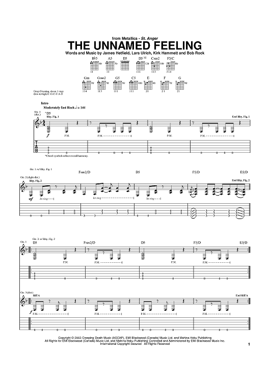 Digital Sheet Music for The Unnamed Feeling by Metallica, Kirk Hammett, James Hetfield, Lars Ulrich scored for Guitar Tab; id:371708