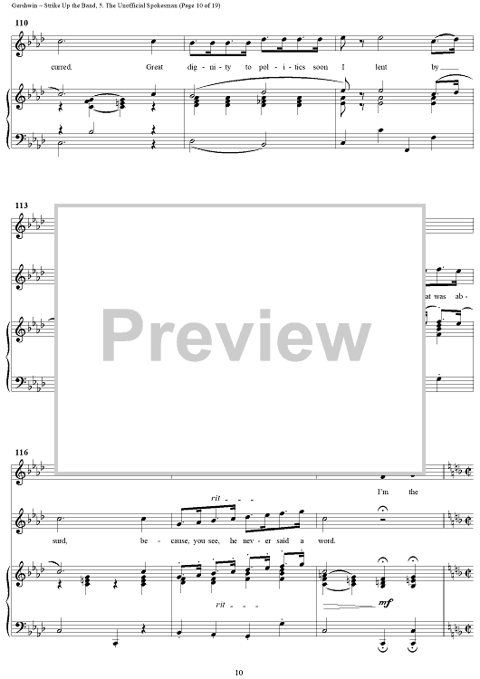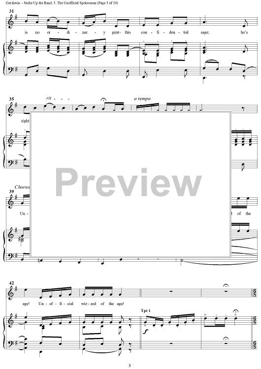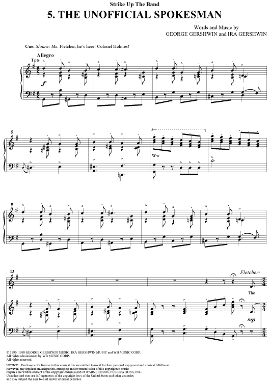 Digital Sheet Music for The Unofficial Spokesman by George Gershwin, Ira Gershwin scored for Piano/Vocal/Chords; id:201380
