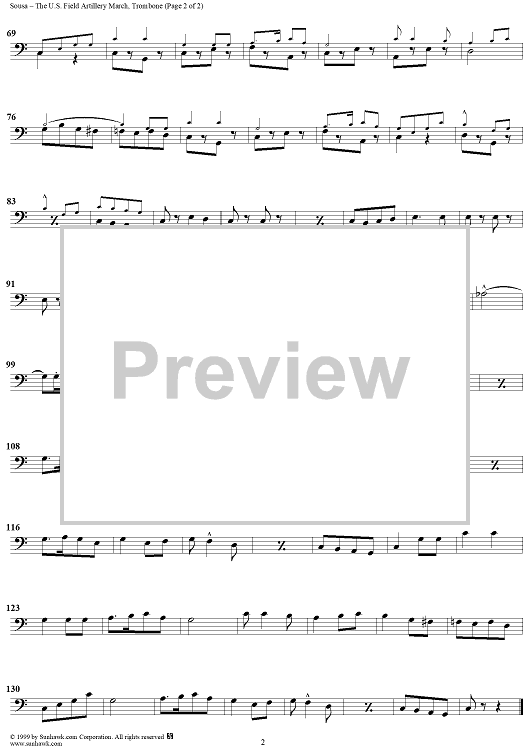 "The U.S. Field Artillery March - Trombone" Sheet Music by John Philip Sousa