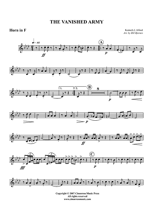 "The Vanished Army - Horn in F" Sheet Music by Kenneth J. Alford
