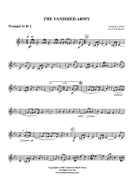 Digital Sheet Music for The Vanished Army - Trumpet 2 in B-flat by Kenneth J. Alford, Bill Bjornes scored for Brass Quintet; id:361157