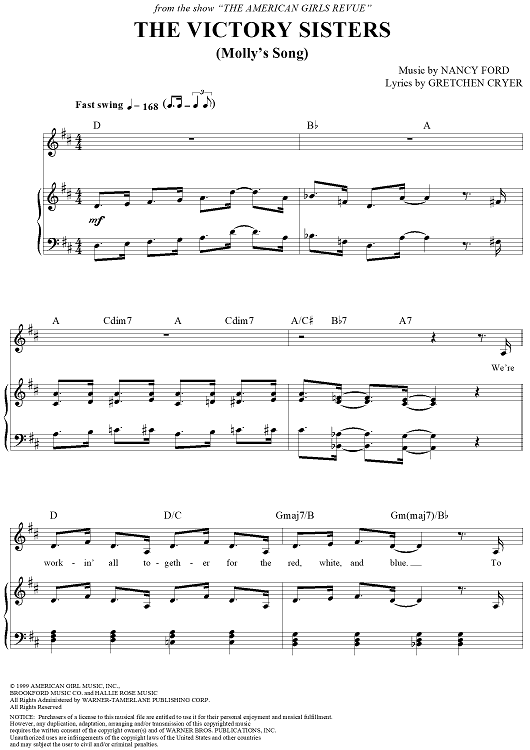 Digital Sheet Music for The Victory Sisters (Molly's Song) by Nancy Ford, Gretchen Cryer scored for Piano/Vocal/Chords; id:269513