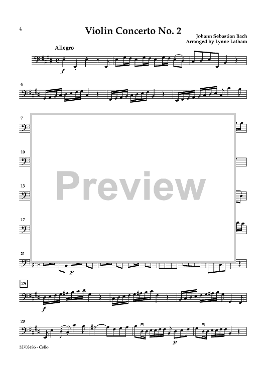 Digital Sheet Music for The Violin Concerti - Cello by Johann Sebastian Bach, Lynne Latham scored for String Quartet; id:463092