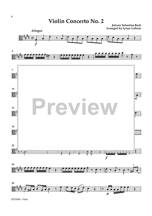 Digital Sheet Music for The Violin Concerti - Viola by Johann Sebastian Bach, Lynne Latham scored for String Quartet; id:463091
