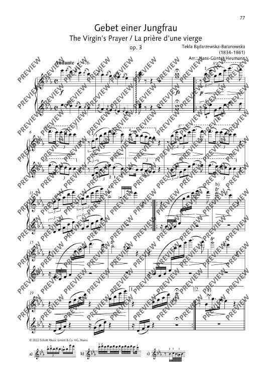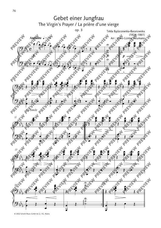 Digital Sheet Music for The Virgin’s Prayer by Tekla Badarzewska, Hans-Guenter Heumann scored for Piano (4 Hands); id:497317