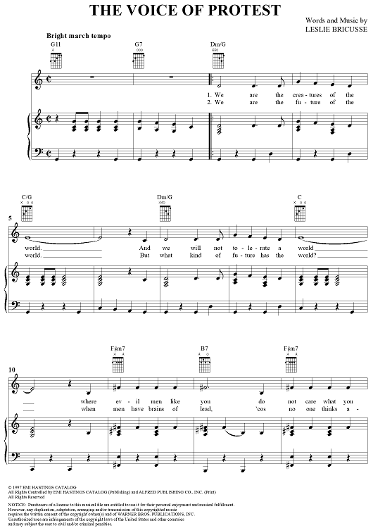 "The Voice of Protest" Sheet Music by Leslie Bricusse