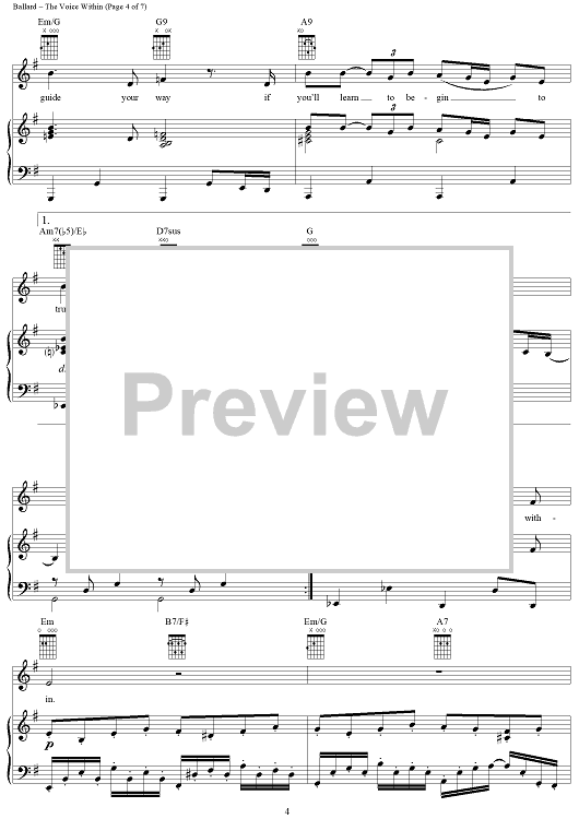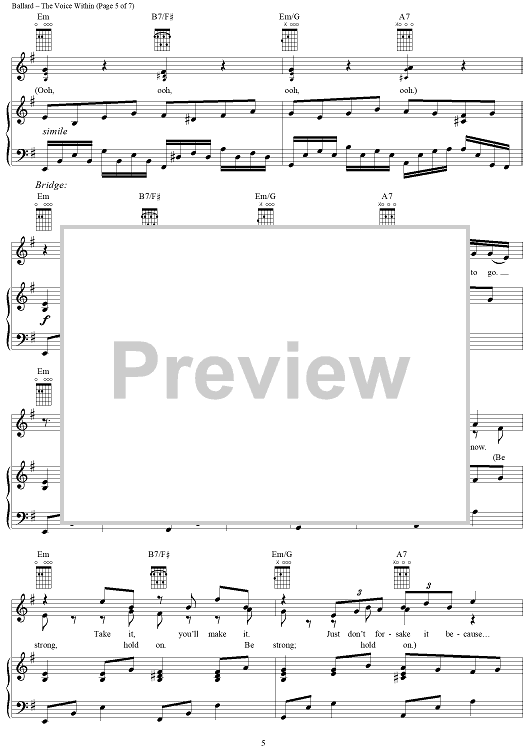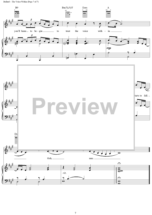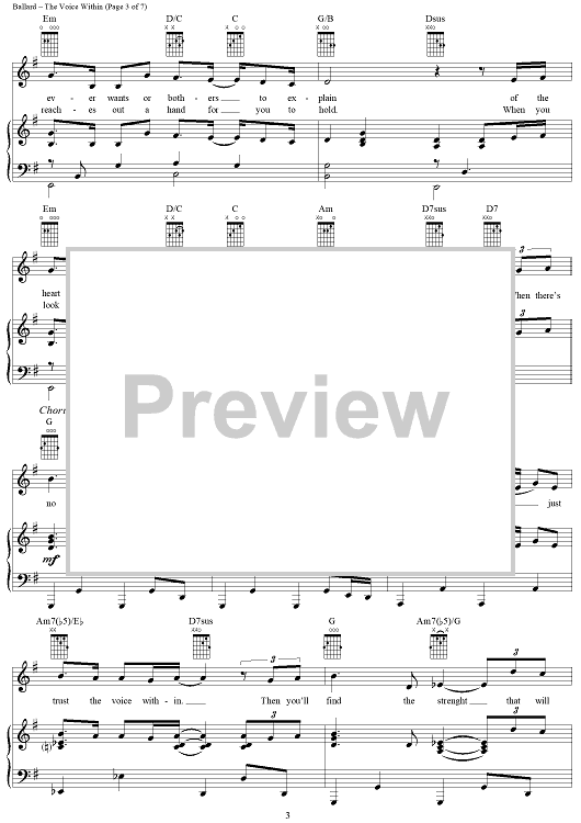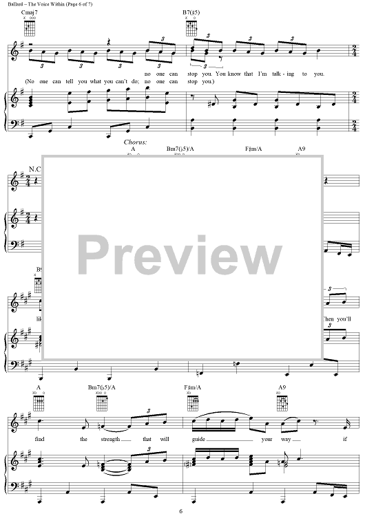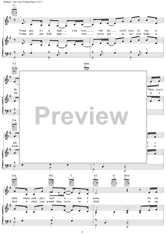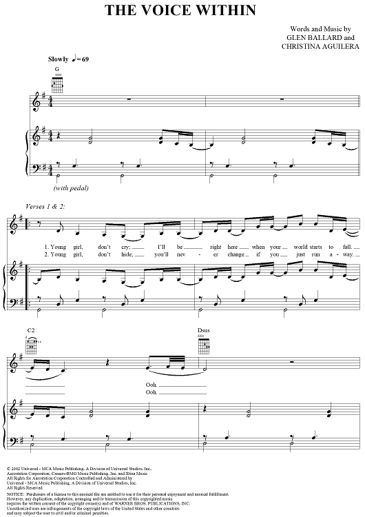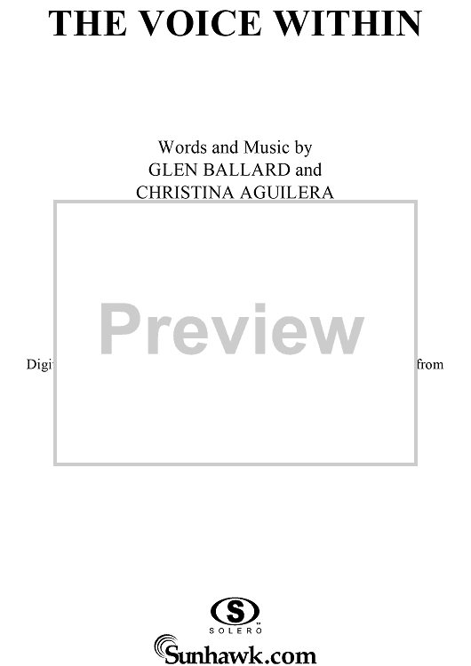 Digital Sheet Music for The Voice Within by Glen Ballard, Christina Aguilera scored for Piano/Vocal/Chords; id:304536