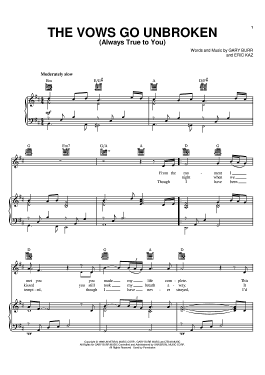 Digital Sheet Music for The Vows Go Unbroken (Always True To You) by Kenny Rogers, Gary Burr, Eric Kaz scored for Piano/Vocal/Chords; id:381253