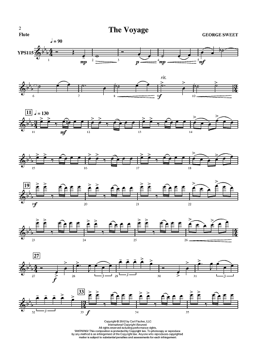 Digital Sheet Music for The Voyage - Flute by George Sweet scored for Concert Band; id:431519