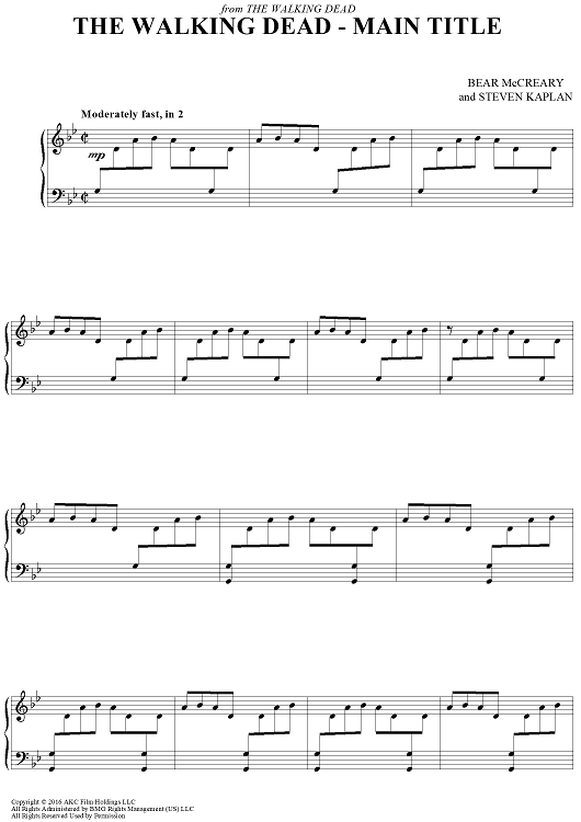 Digital Sheet Music for The Walking Dead - Main Title by Bear McCreary, Juice Wrld, Steven Kaplan scored for Piano Solo; id:468987
