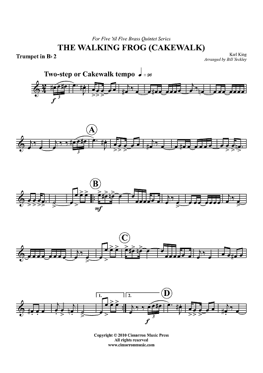 Digital Sheet Music for The Walking Frog (Cakewalk) - Trumpet 2 in Bb by Bill Yeckley, Karl King scored for Brass Quintet; id:427166
