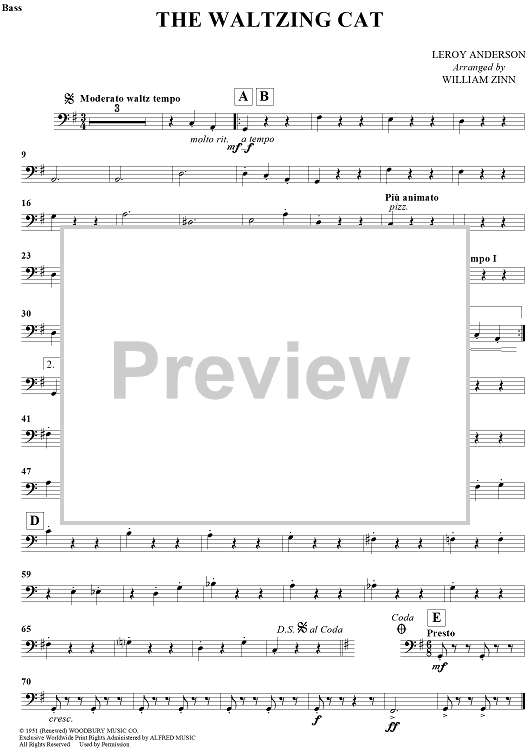 "The Waltzing Cat - Bass" Sheet Music by Leroy Anderson