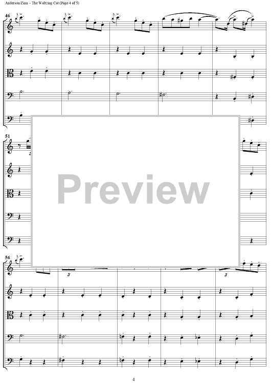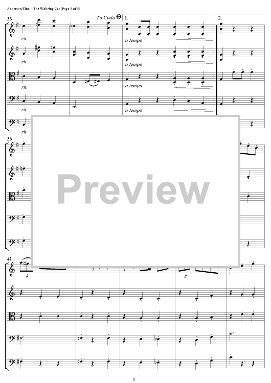 Digital Sheet Music for The Waltzing Cat - Score by Leroy Anderson, William Zinn scored for String Ensemble; id:434283