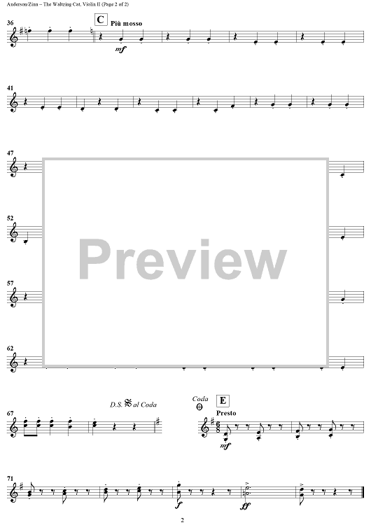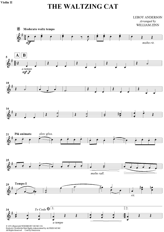 "The Waltzing Cat - Violin 2" Sheet Music by Leroy Anderson