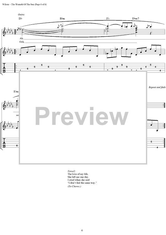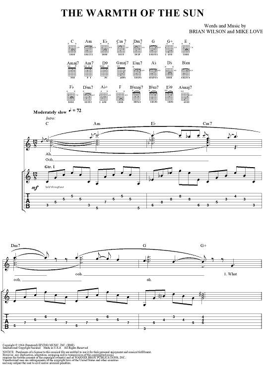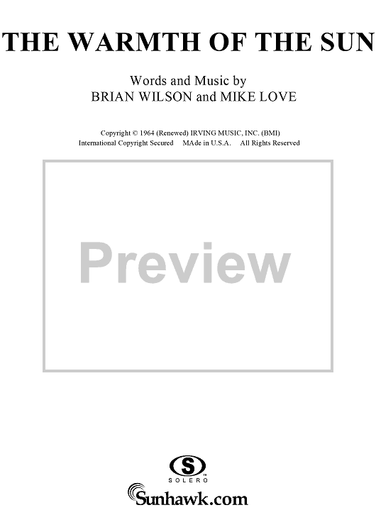"The Warmth of the Sun" Sheet Music by The Beach Boys