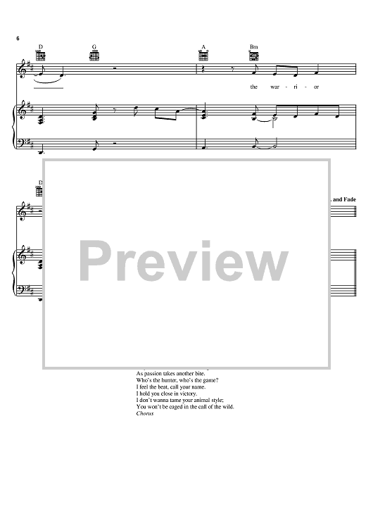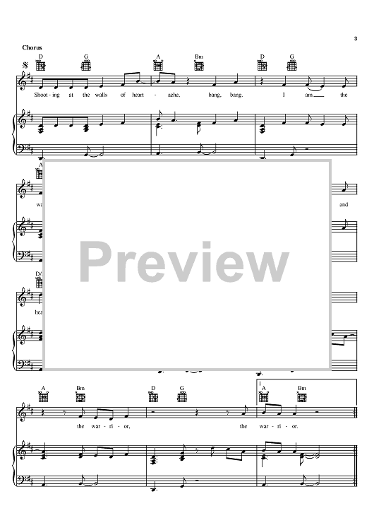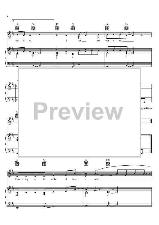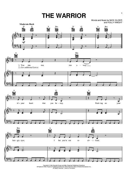 Digital Sheet Music for The Warrior by Holly Knight, Nick Gilder, Scandal scored for Piano/Vocal/Chords; id:381332