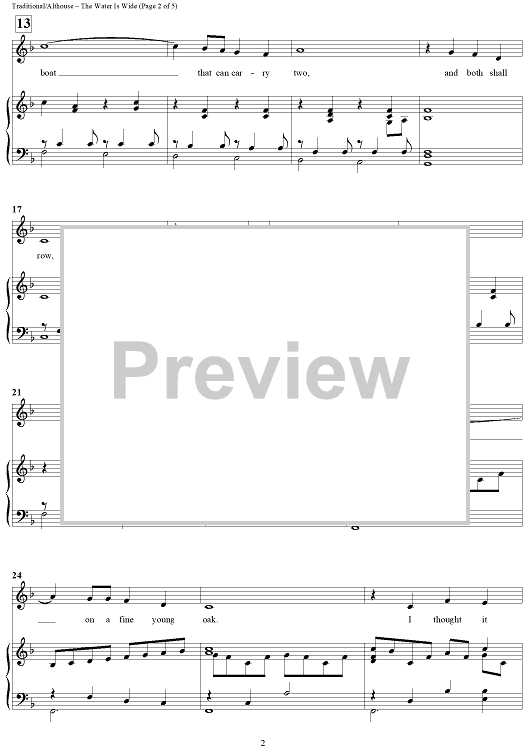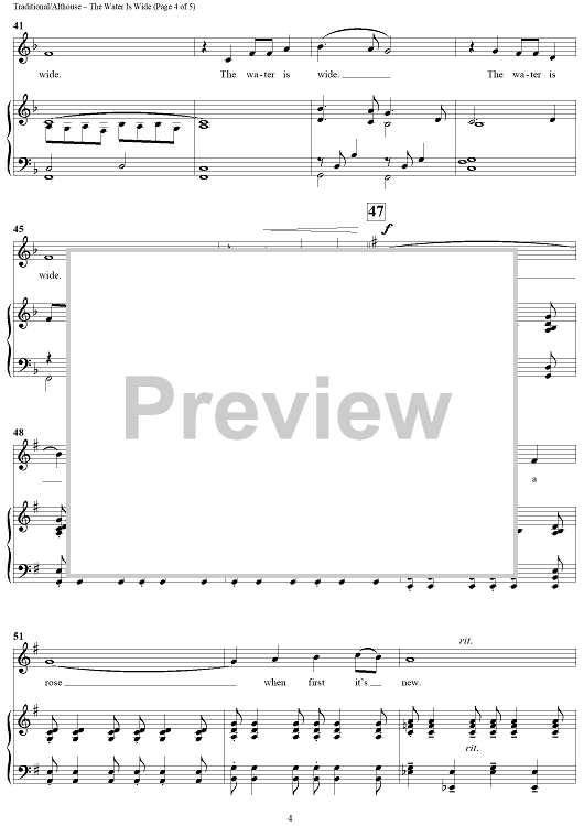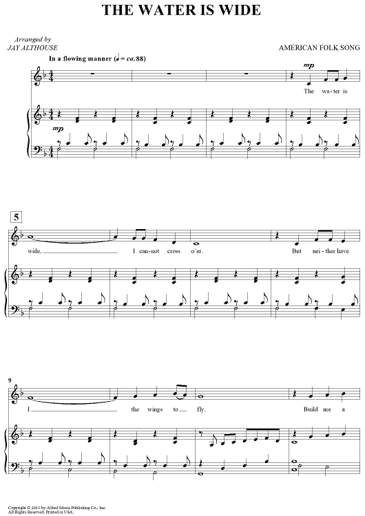 "The Water Is Wide" Sheet Music by Southern Folk Tune