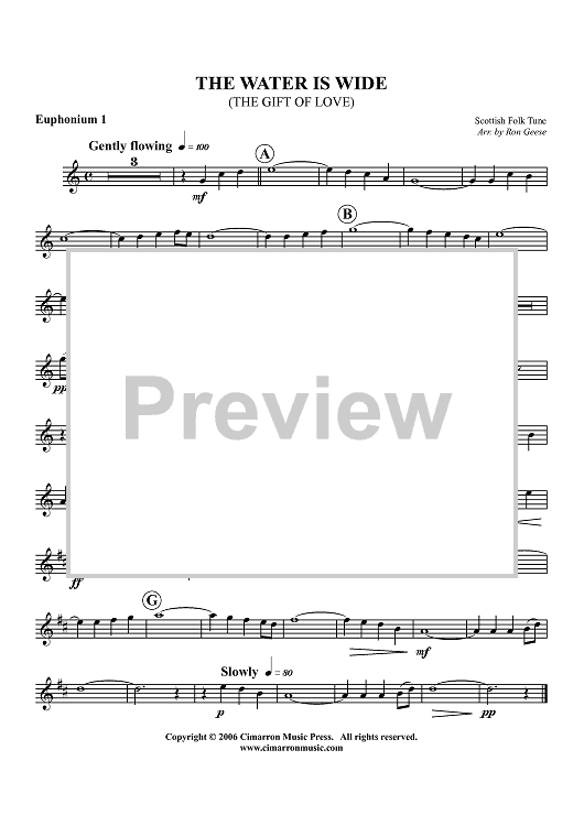 Digital Sheet Music for The Water is Wide (The Gift of Love) - Euphonium 1 BC/TC by Ron Geese, Scottish Folk Tune scored for Tuba Quartet; id:360256