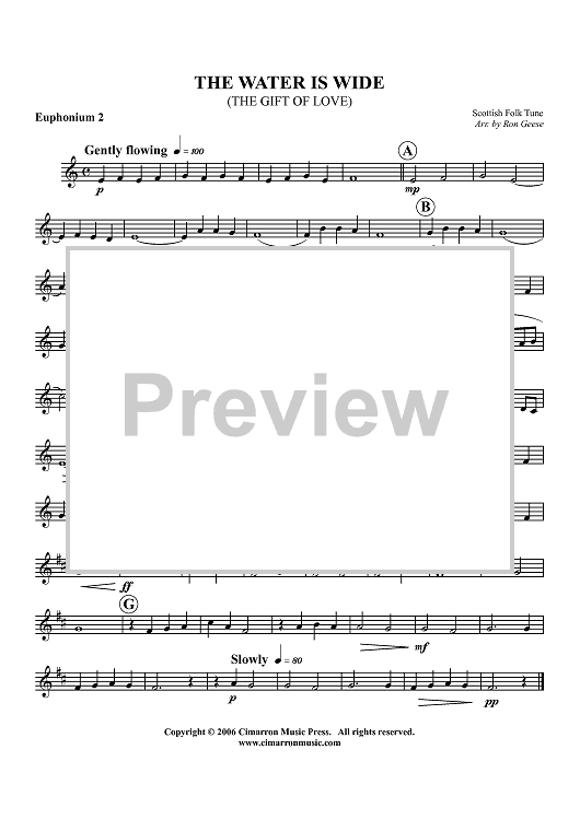 Digital Sheet Music for The Water is Wide (The Gift of Love) - Euphonium 2 BC/TC by Ron Geese, Scottish Folk Tune scored for Tuba Quartet; id:360257