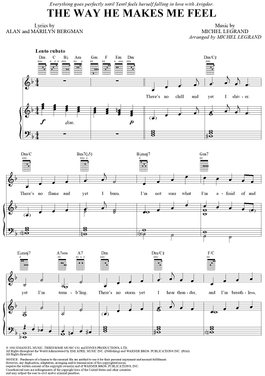 Digital Sheet Music for The Way He Makes Me Feel by Michel LeGrand, Alan Bergman, Marilyn Bergman scored for Piano/Vocal/Chords; id:311685