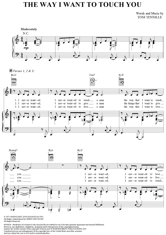 Digital Sheet Music for The Way I Want to Touch You by Toni Tennille, Captain & Tennille scored for Piano/Vocal/Chords; id:288269