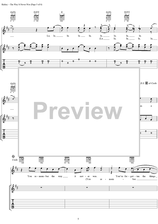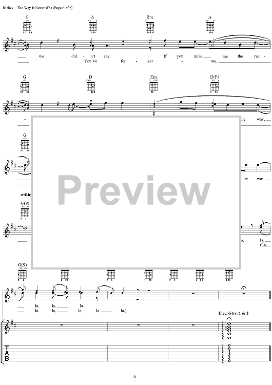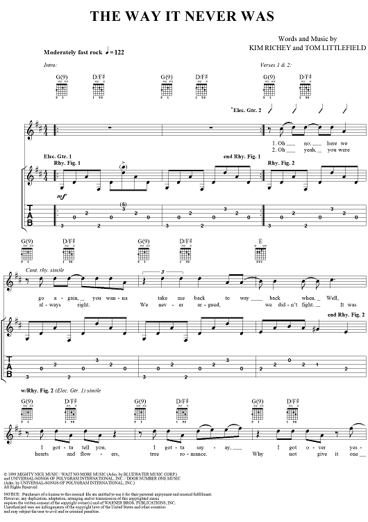Digital Sheet Music for The Way It Never Was by Kim Richey, Tom Littlefield scored for Easy Guitar Tab/Vocal; id:234050