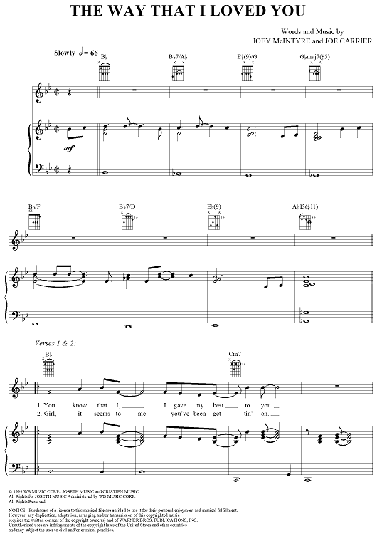 Digital Sheet Music for The Way That I Loved You by Joey McIntyre, Joe Carrier scored for Piano/Vocal/Chords; id:240423
