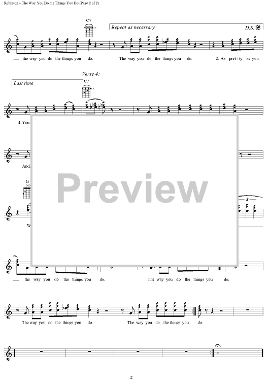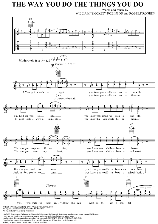 Digital Sheet Music for The Way You Do the Things You Do by Jerry Garcia, Smokey Robinson, Robert Rogers scored for Easy Guitar Tab/Vocal; id:291740