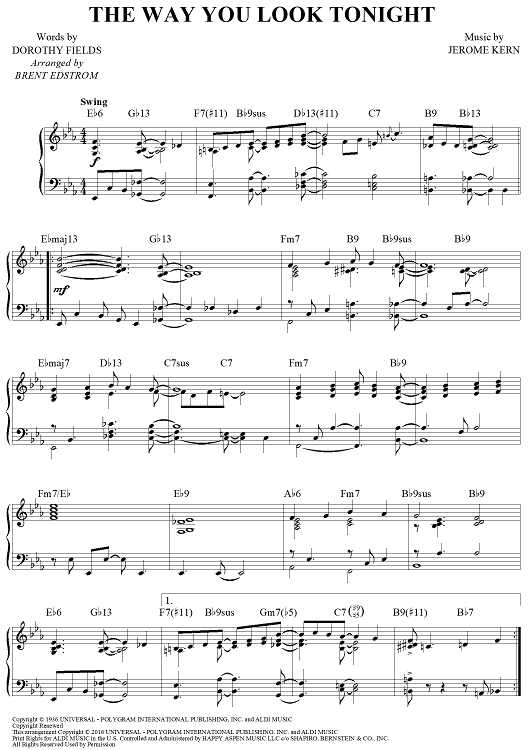 Digital Sheet Music for The Way You Look Tonight by Jerome Kern, Dorothy Fields, Brent Edstrom scored for Piano Solo; id:463827
